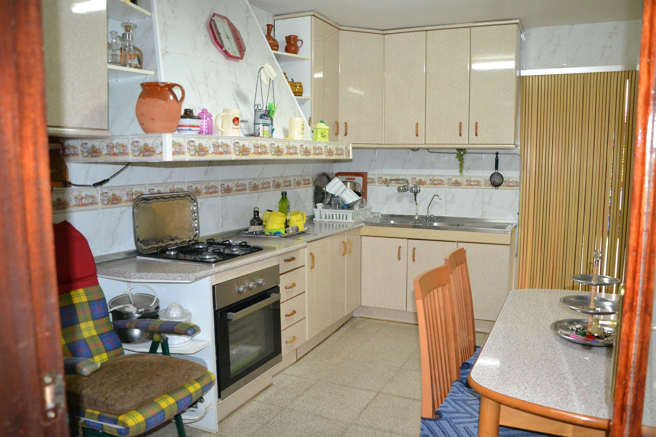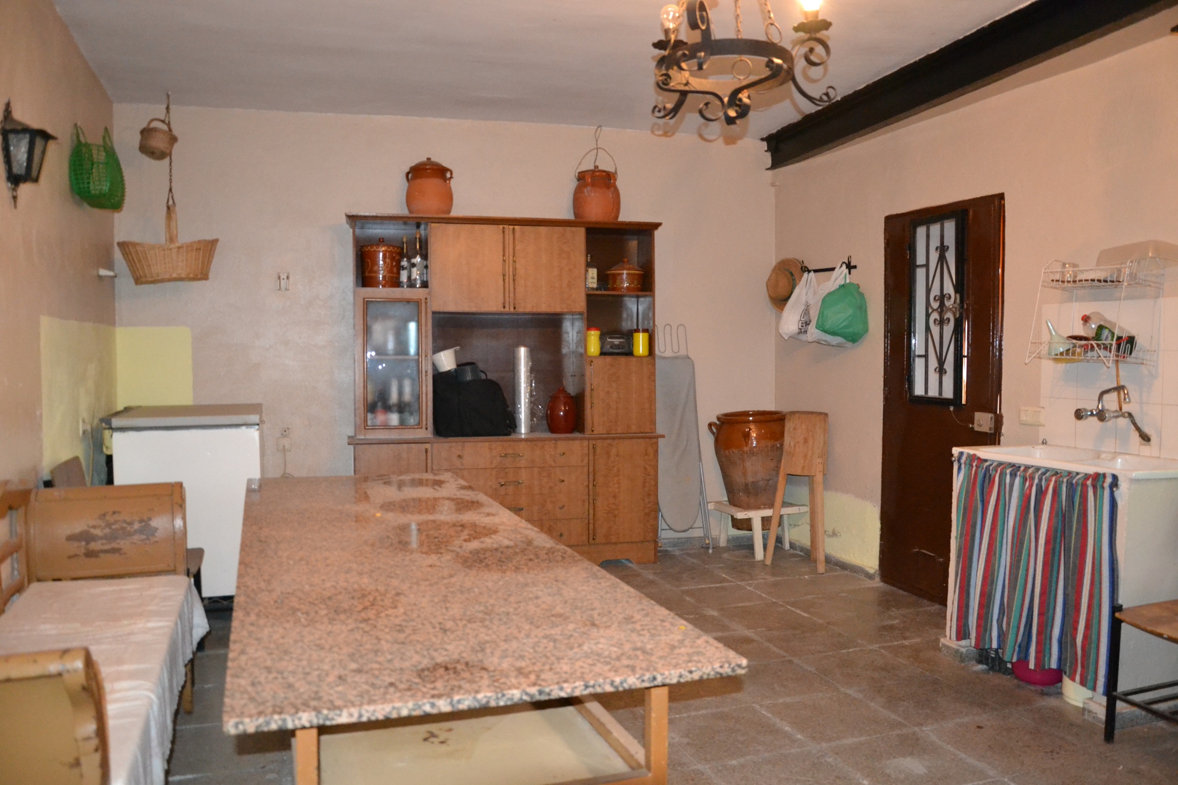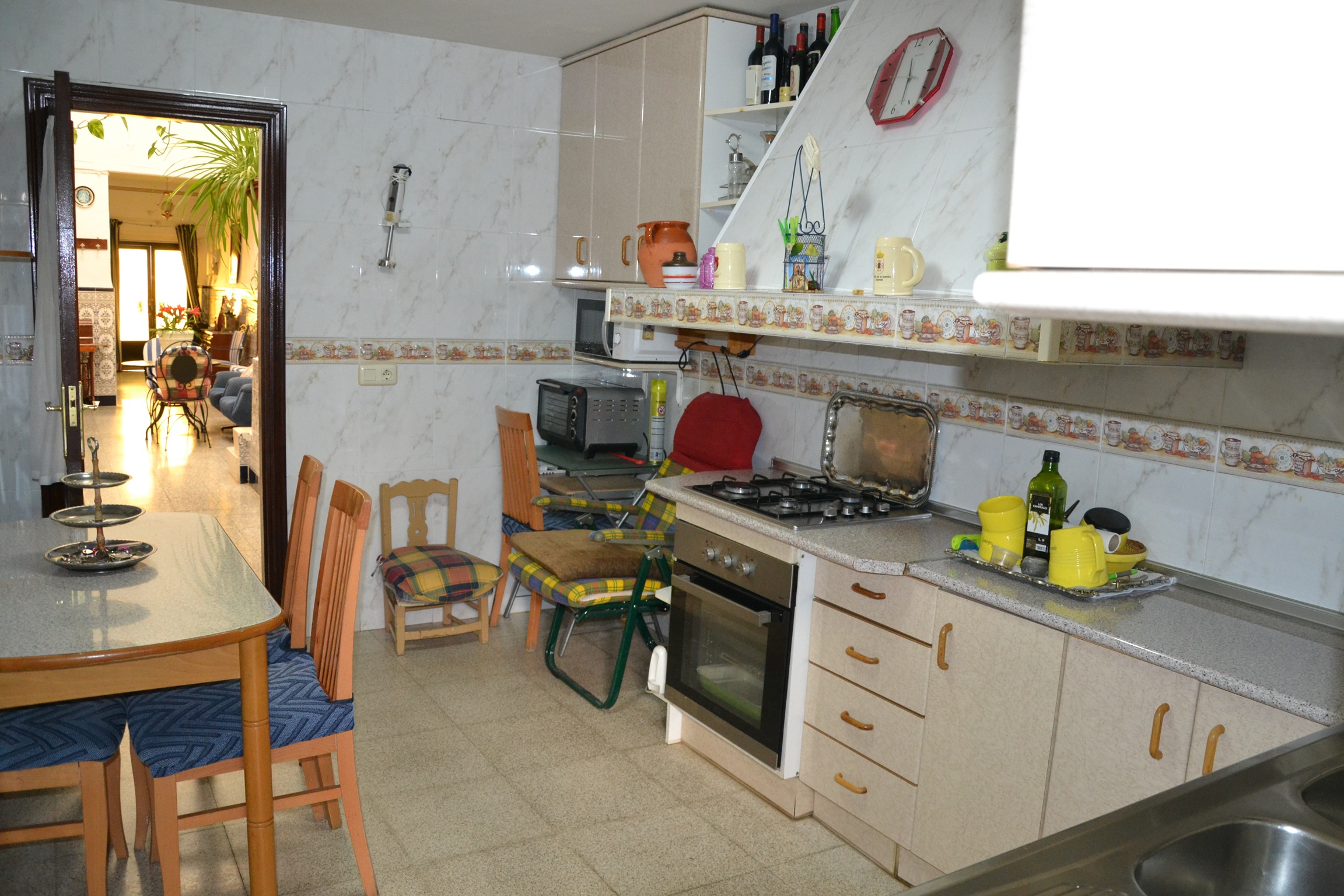 Cocina amueblada, mide unos 10 m², con una despensa y desde aquí se accede al patio de unos 50 m² aproximadamente donde también hay varios trasteros, en uno de ellos está la caldera y el depósito de combustible de la calefacción.